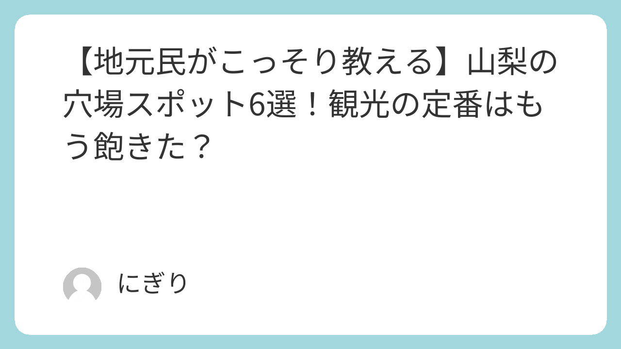 ぜひ次の山梨旅行では、定番観光地から一歩踏み込んで、自分だけの特別な旅を楽しんでみてくださいね。