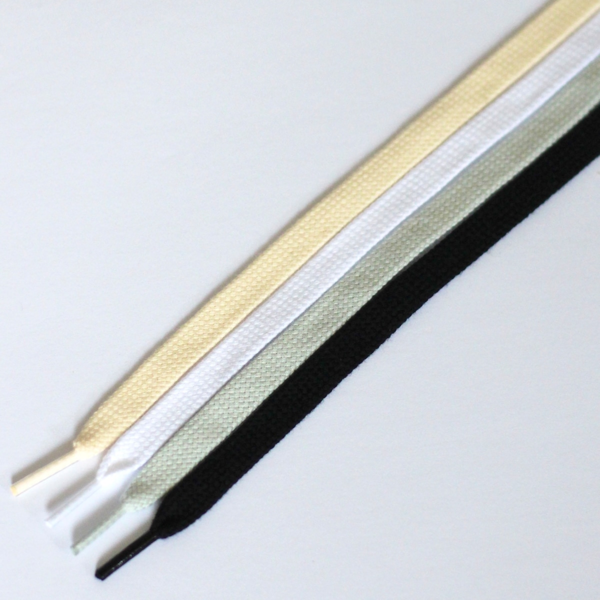 コットン100%、幅8.5mmの日本製フラットレース。ナチュラル、ホワイト、スティール、ブラックの4カラー展開。コットンならではの柔らかな質感で、スニーカーも優しい印象に。ローテクからハイテクモデルまで幅広く使えます。長さ120cmはローカ...
